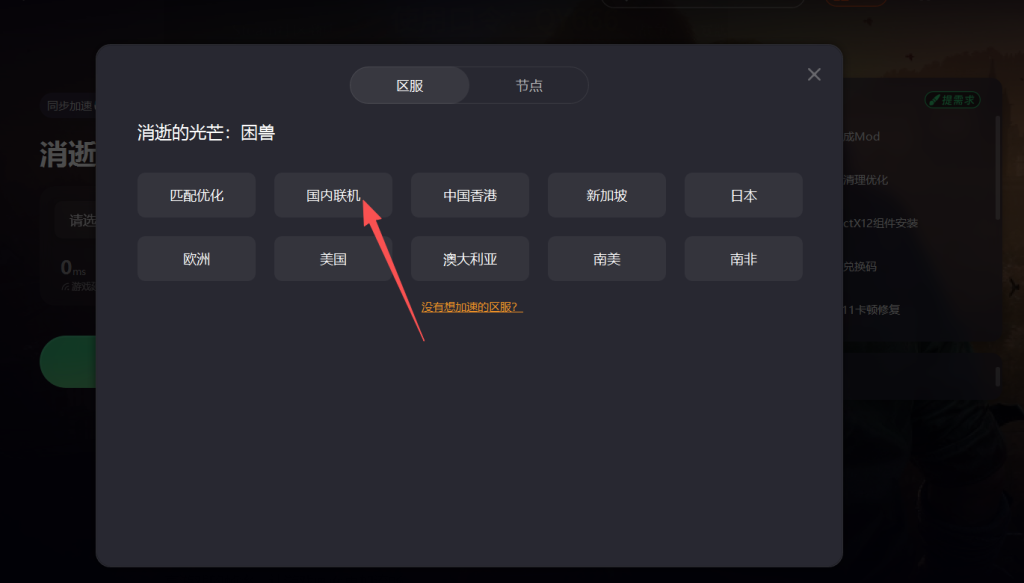 打开奇游加速工具后,在搜索栏中输入消逝的光芒困兽,然后选择国内联机区服的节点进行加速。奇游针对该游戏的网络问题进行了专项线路优化,能够有效提升网络连接的稳定性,减少因网络问题引发的卡顿、帧数低和掉帧现象。