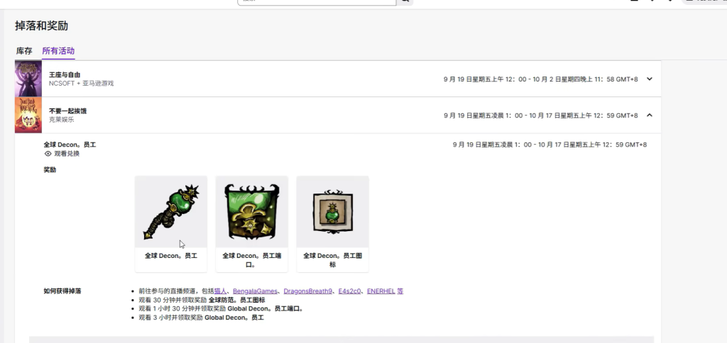 在老鼠台上点击所有活动,找到饥荒专区并进入。随后在指定频道观看三小时直播,即可解锁全部奖励。
