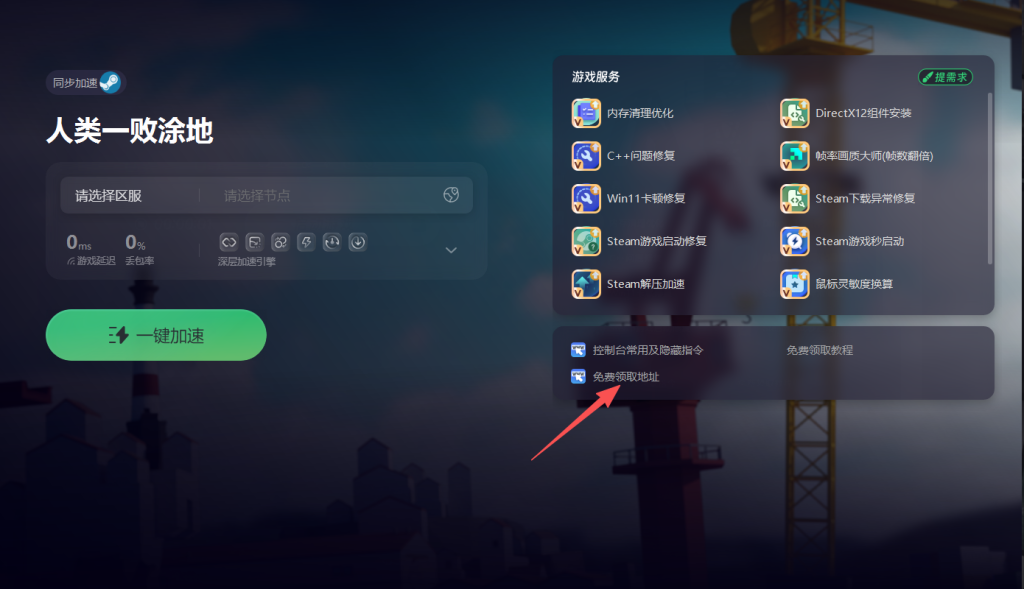 为了能顺利访问联想官网,我们可以借助奇游加速工具,对人类一败涂地进行加速。加速完成后,点击右侧的免费领取地址,就能直接进入活动界面。