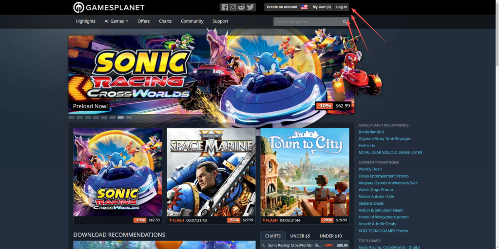 账号注册并验证成功后登录账号,点击相应按钮进入 gamesplanet 领游戏的界面。在该界面顶部点击log in,然后点击register,再次填写邮箱、用户名、密码等信息注册一个新账号,之后只需等待活动开启。