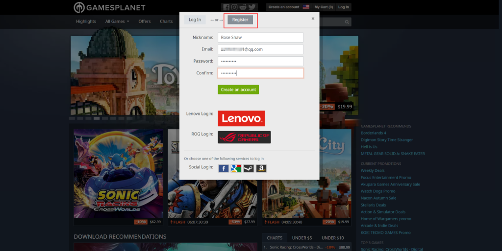 注册完成,玩家们需要前往邮箱完成验证步骤,验证通过后账号即注册成功。接下来登录刚注册的账号,点击相应链接进入gamesplanet领游戏界面。