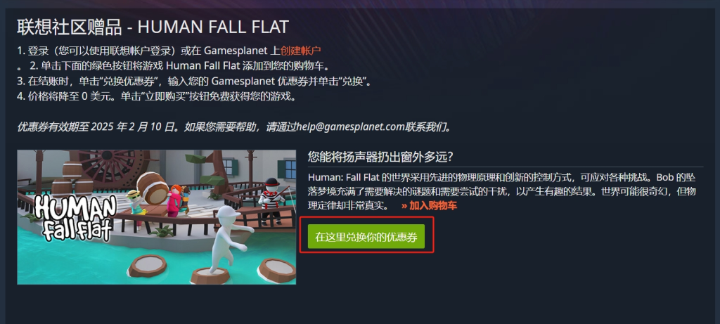 人类一败涂地喜加一领取教程 联想喜加一注册,领取,兑换教程