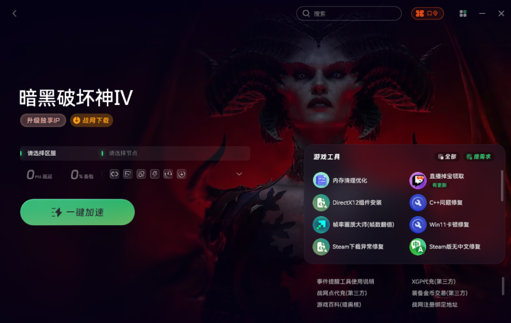 在打开《暗黑破坏神4》第十赛季过程中,打开奇游,搜索”暗黑4S10″。通过优化电脑本地网络的环境,从而解决因网络问题导致的更新后进不去、卡死或无法登录等情况。