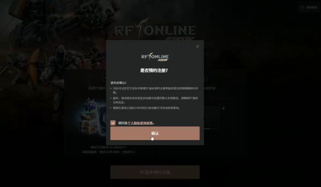 最后再次点击PC版本预约注册,确认预约信息等待游戏上线。等到9月30日游戏正式上线,系统会自动进行下载安装玩家就可以第一时间进入游戏。