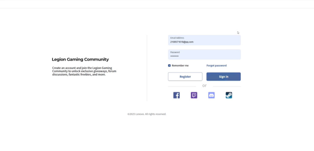 加速完成后点击免费领取地址。进入页面后,点击右上角注册联想账号。