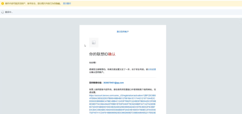 前往邮箱进行激活操作,进入邮箱,找到联想发送的邮件,点击邮件中的链接,若出现相应界面,则表示激活成功。
