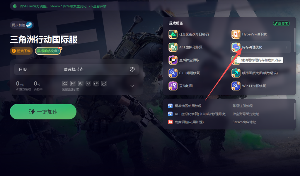 由于三角洲行动的服务器不在国内,网络限制较为严格且波动较大,这很容易导致游戏出现闪退蓝屏、卡顿掉帧等现象。使用奇游加速工具对网络进行优化是个不错的选择。通过优化网络连接,降低网络延迟和丢包率,能有效改善游戏的运行环境。