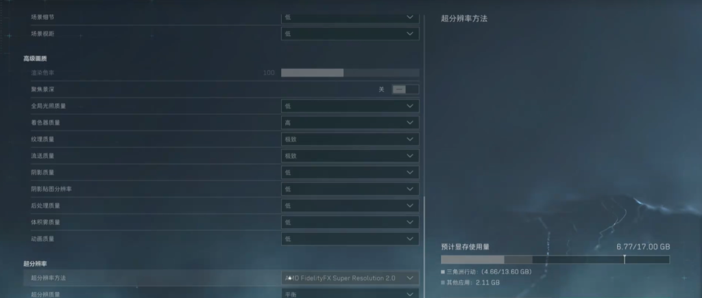 超分辨率技术方面推荐使用DLSS或FSR 2.0,质量模式选择平衡以兼顾画质与帧数。若对画质要求不高,可切换至性能优先模式。
