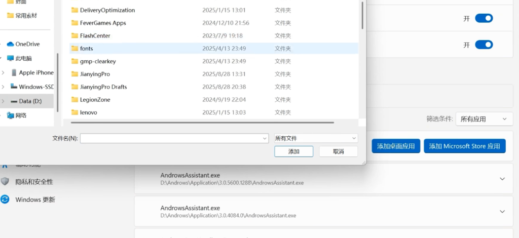 在自定义应用列表中添加游戏启动文件,确保系统以最优性能运行游戏。