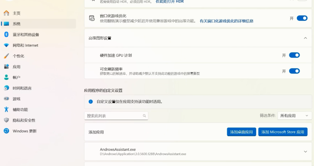 首先玩家们将三角洲行动设为高性能电源模式。在系统设置中搜索图形设置,进入高级选项后,开启GPU加速与可变刷新率功能。