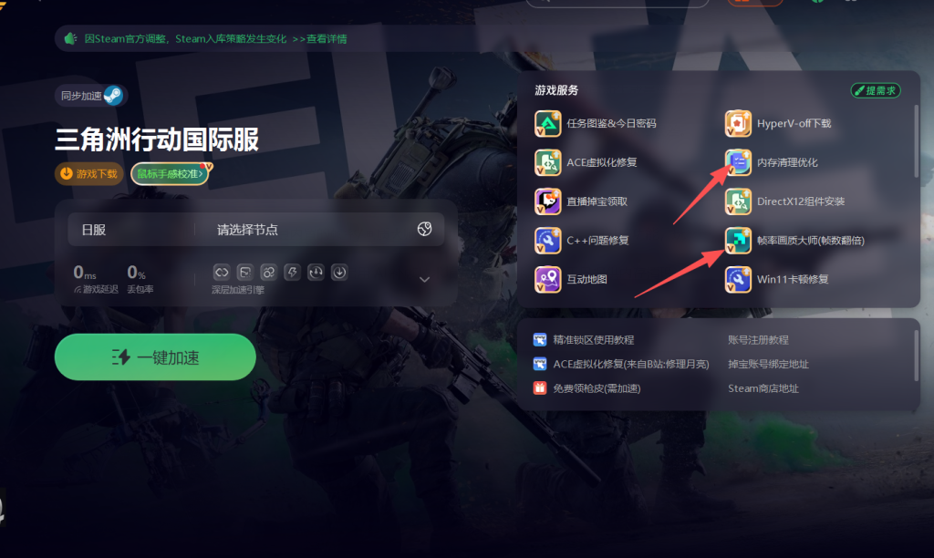 此外奇游加速工具内置的帧率/画质大师工具可进一步挖掘硬件潜力。通过该功能,玩家能实时监控帧数波动,并启用AI补帧技术填补画面卡顿。同时工具提供内存清理选项,自动释放冗余资源,减少游戏过程中的卡顿现象。