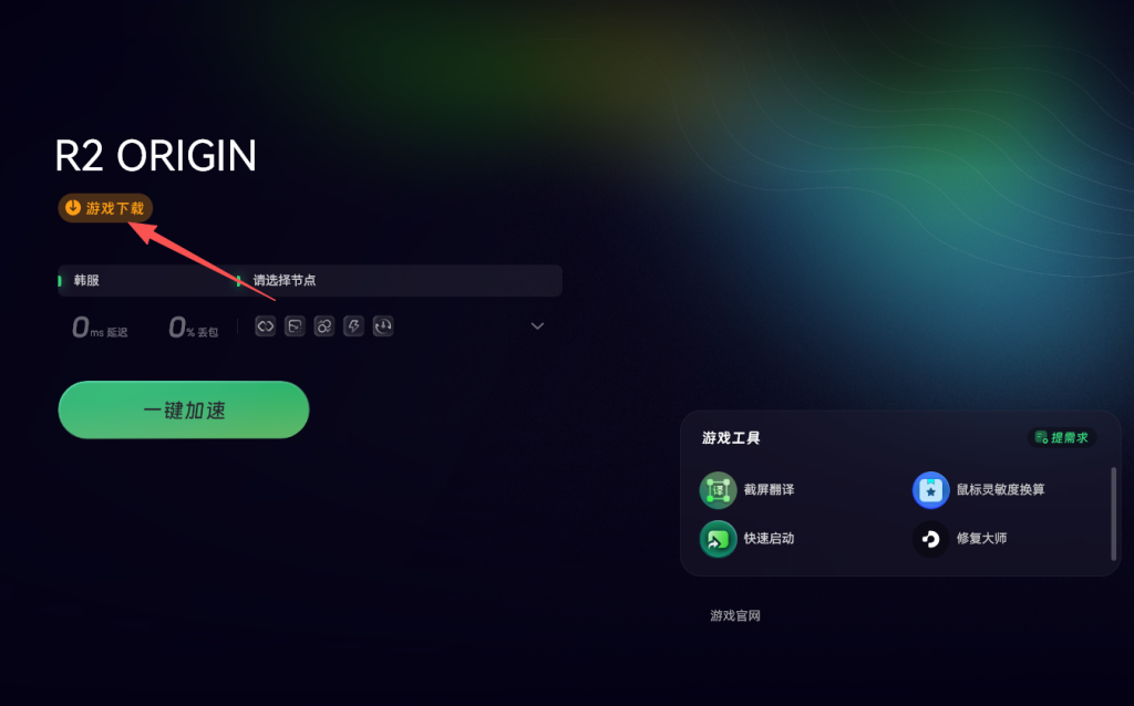 首先由于R2ORIGIN为韩国游戏,国内玩家直接连接可能会遇到访问障碍。小编建议玩家使用奇游加速工具来优化网络连接。安装运行奇游后搜索R2ORIGIN,点击一键加速改善连接状况。