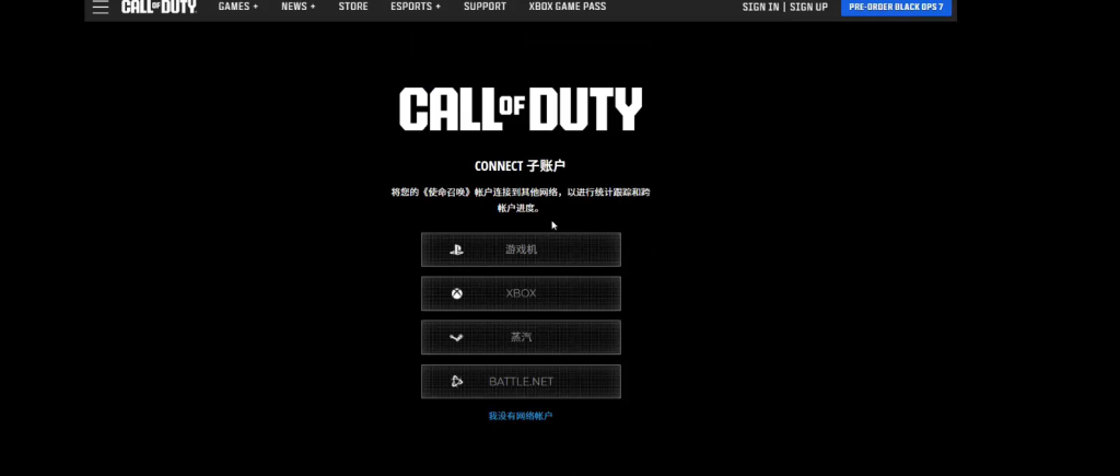 进入网址后登录自己的动视账号。还没有动视账号,可点击页面下方进行注册。注册时,要输入成年的日期,选择合适的地区,接着输入自己的邮箱地址并确认,然后设置动视账号名称、姓名以及密码,完成注册流程。