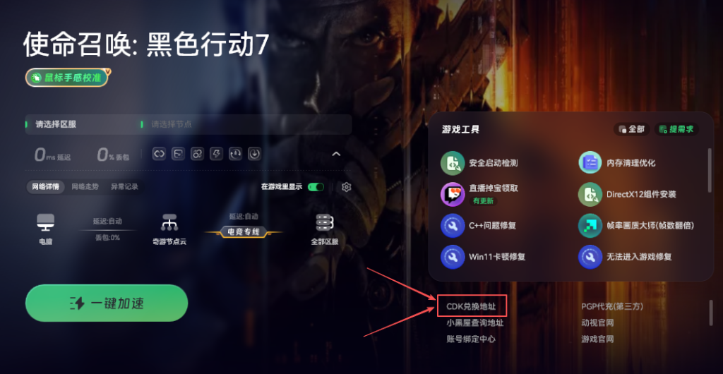 获得资格后通过奇游加速工具进入CDK兑换专区。登录动视账号并粘贴兑换码,即可在10月3日优先进入游戏测试服。建议提前完成兑换操作,避免测试开启时集中访问导致服务器拥堵。