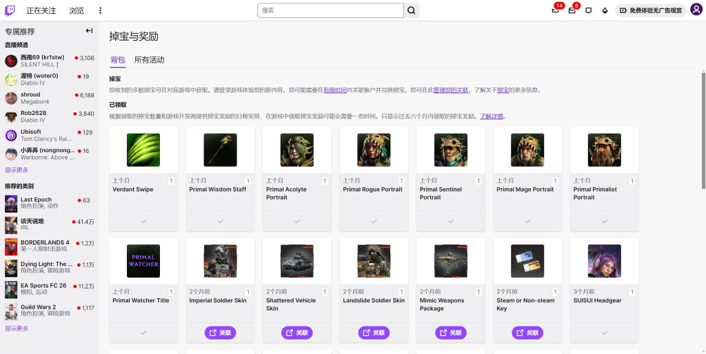 9月30日活动开启后进入带有Drops Enabled标识的Twitch直播间,挂机观看即可。系统会根据观看时长,自动将测试资格发放至动视账号。玩家可在“掉宝与奖励”页面查询获取状态。