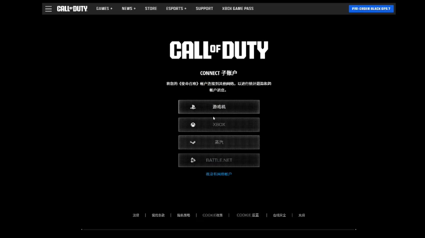 登录或注册成功后,需在动视账号中绑定你计划用于游玩COD22的游戏平台,如PS、Xbox或PC。