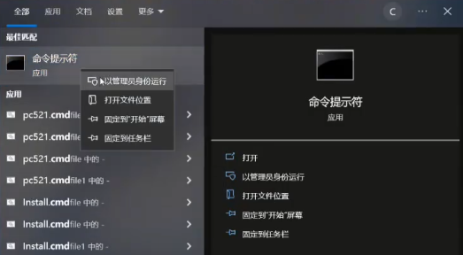 接着在开始菜单输入“cmd”,选择“以管理员身份运行”,打开命令提示符后输入:bcdedit /set hypervisorlaunchtype auto 按回车,显示“操作成功完成”就可以了。这一步是调整系统引导配置,帮助ACE正常启动。