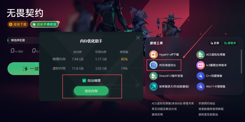 你还可以顺便设置一下内存自动清理。在奇游工具箱里找到内存清理工具,勾上“自动清理”,减少后台占用。