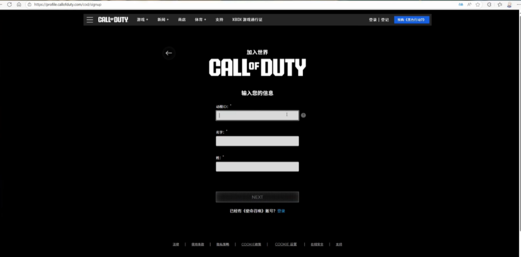 在获取CDK后先对COD22进行加速。加速完成后,点击右下角的CDK兑换地址。进入该页面后,登录我们的动视账号。若还没有账号,直接注册即可,注册流程十分简便。