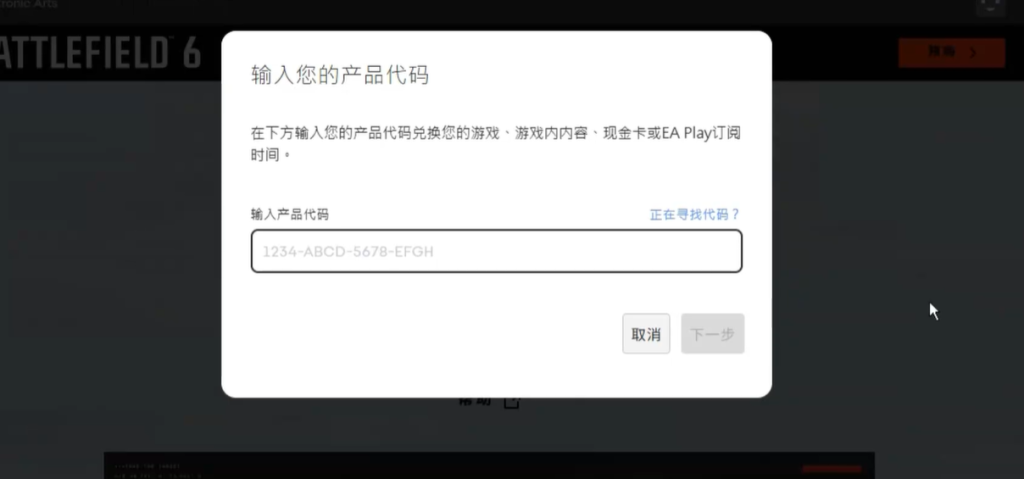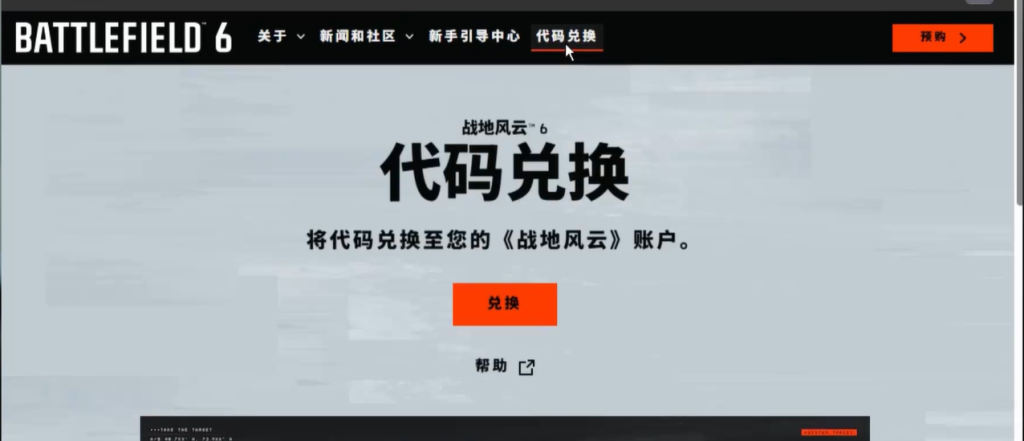 加速完成后进入战地风云6的EA官方网站。如果没有拥有EA账号,需先进行注册登录。登录成功后,在官网页面找到“代码兑换”选项并点击进入。
