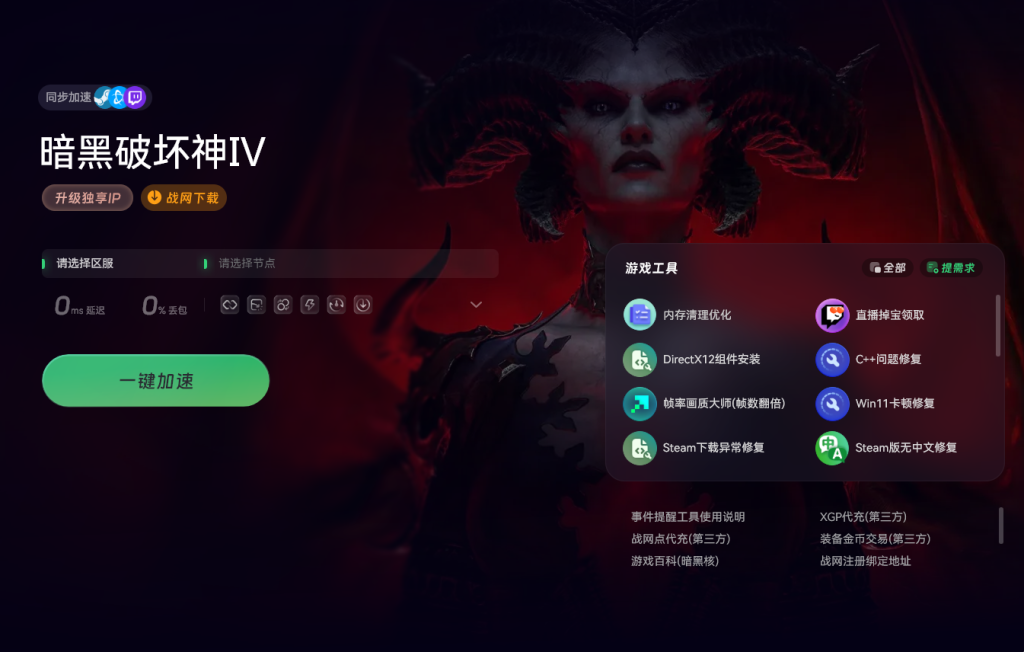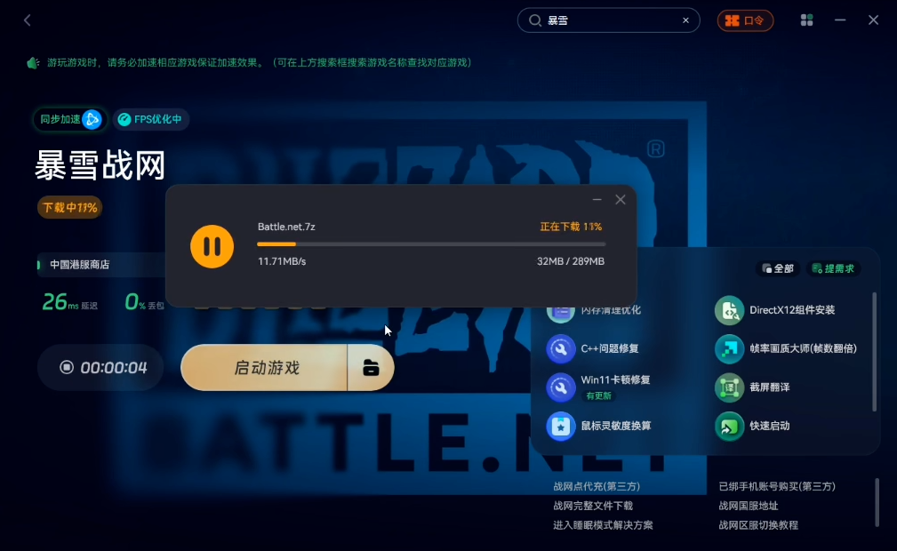 加速完成后点击页面上的游戏下载选项,工具将自动为我们一键下载并安装战网客户端。