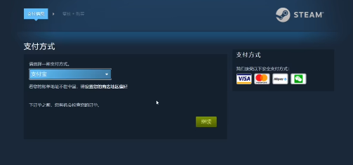 第一步,我们先在国区Steam商店里随便找一个价格便宜的小游戏,把它加到购物车,进入支付环节。