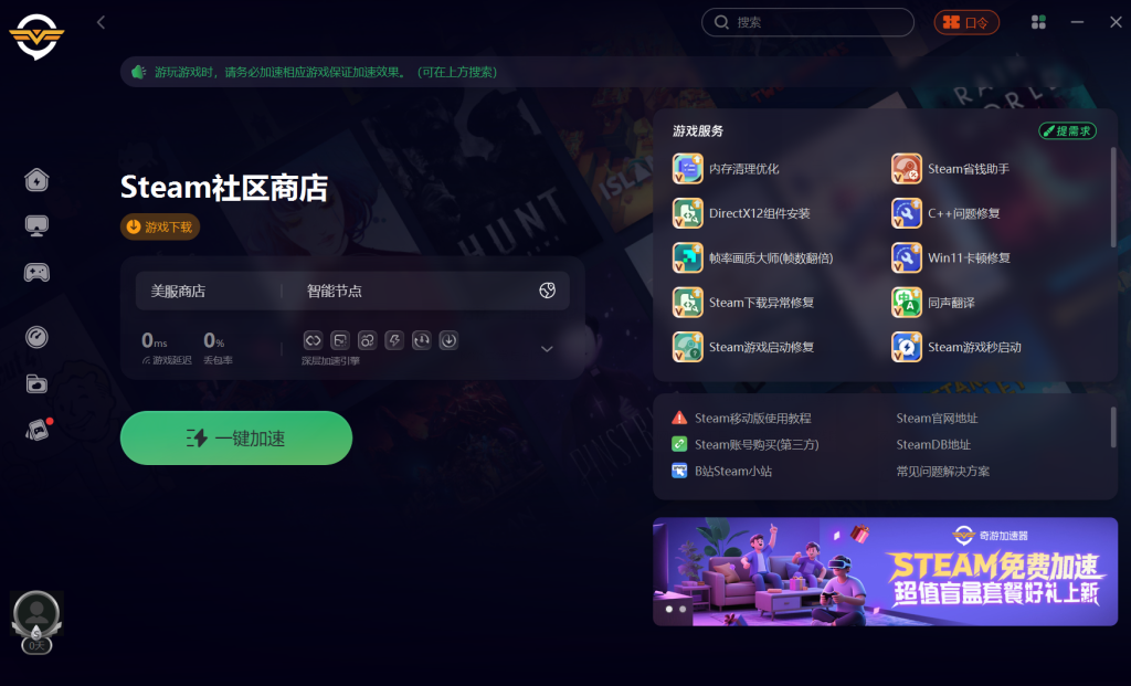 网络异常是引发该错误的常见原因。首先可重启路由器,等待约一分钟后重新连接网络,观察问题是否解决。若无效,可能是本地网络到 Steam 服务器的连接不稳定,此时可使用奇游加速器优化网络。该工具能自动筛选最优线路,缓解网络波动带来的连接问题。此外,在 Steam 设置里更换下载区域,选择距离较近的服务器,也可能改善连接状态。