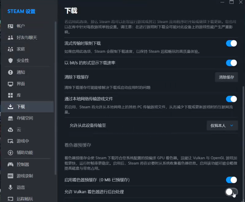 Steam设置中的着色器预缓存功能,虽然在一定程度上可以提升游戏性能,但有时也可能导致游戏出现安装运行脚本出错或反作弊系统更新异常等问题。关闭这一功能可以减少游戏在运行过程中的额外负担,有助于解决相关报错问题。