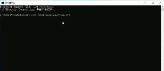 打开那个黑色的窗口后,输入 bcdedit /set hypervisorlaunchtype off 这行代码,然后按回车。完成后关闭窗口,再次重启电脑。
