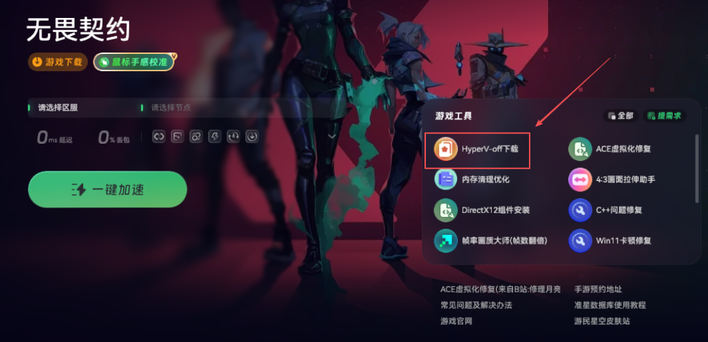 加速成功后,在加速页面找到“Hyper-V关闭工具”并下载。