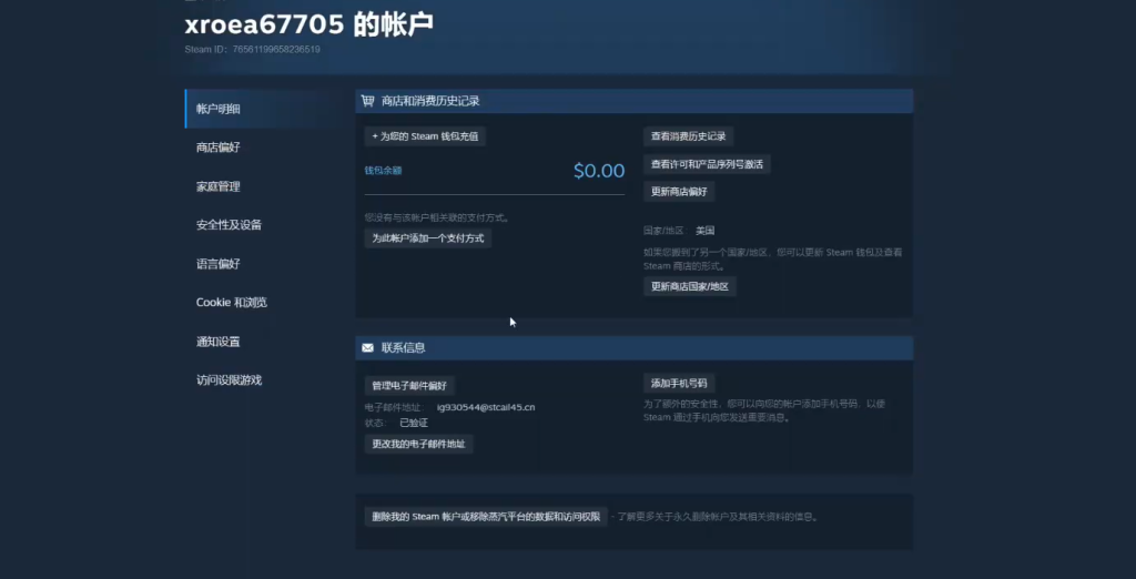 获得外区账号后使用奇游加速Steam港区进行登录。登录成功后在Steam客户端的右上角找到账户明细选项,点击进入后即可修改绑定的邮箱,确保账号安全。