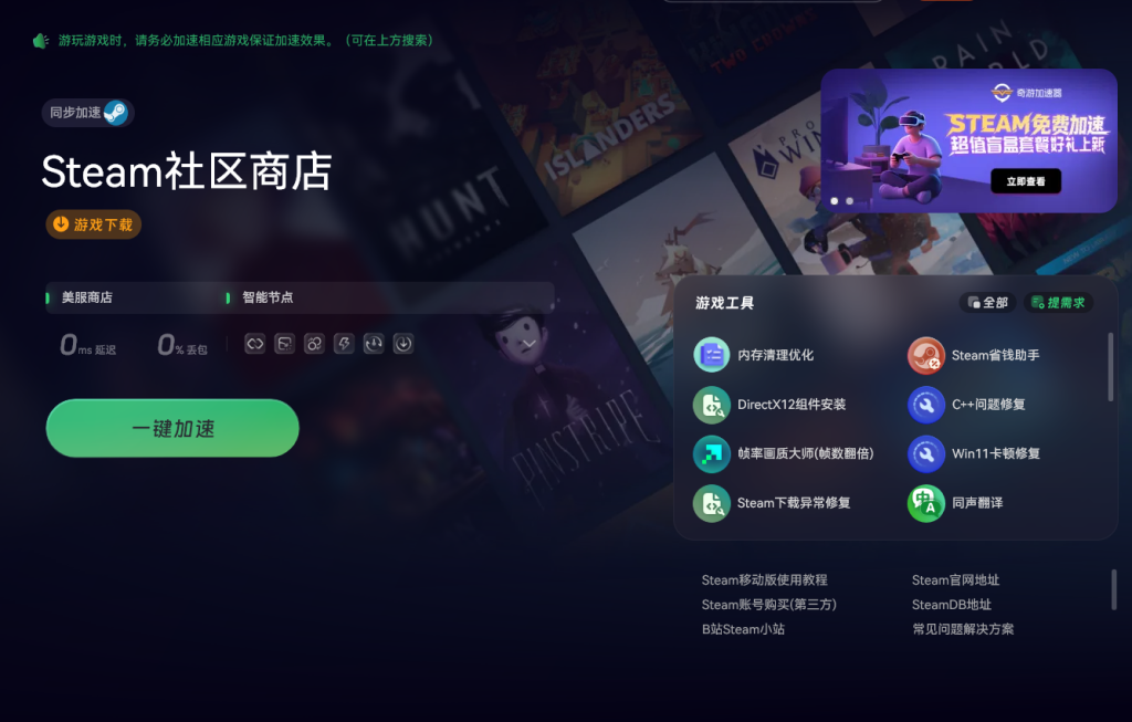 由于Steam服务器的特性,注册外区账号时可能会遇到响应无效、注册失败的问题。对于嫌注册流程繁琐的小伙伴来说,有一个简便的方法就是打开奇游加速工具,在右上角输入获取外区账号的指令,即可直接获得一个Steam美区账号,省去了注册的麻烦。