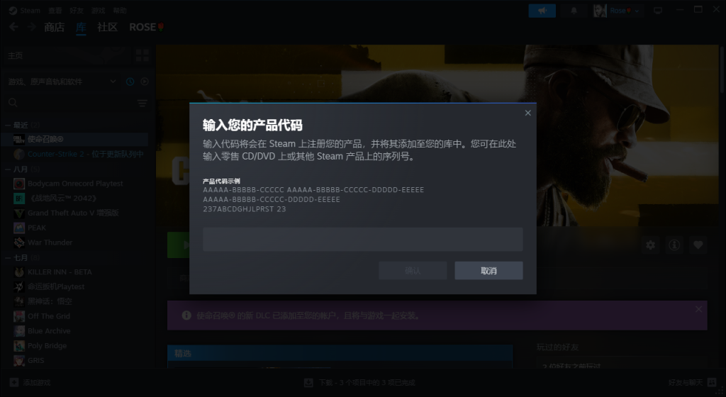 然后去Steam激活游戏即可