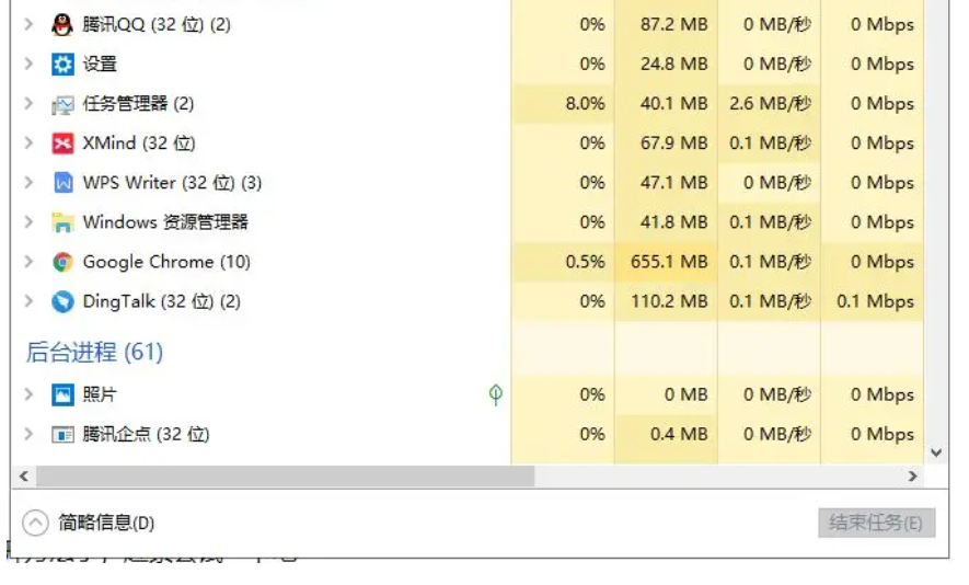 后台程序占用资源会拖慢加载速度。首先按 “Ctrl+Shift+Esc” 打开任务管理器;然后结束视频播放软件、文件下载工具等占用 CPU 或内存超过 10% 的程序;注意保留游戏进程与加速器进程,避免出现资源冲突。