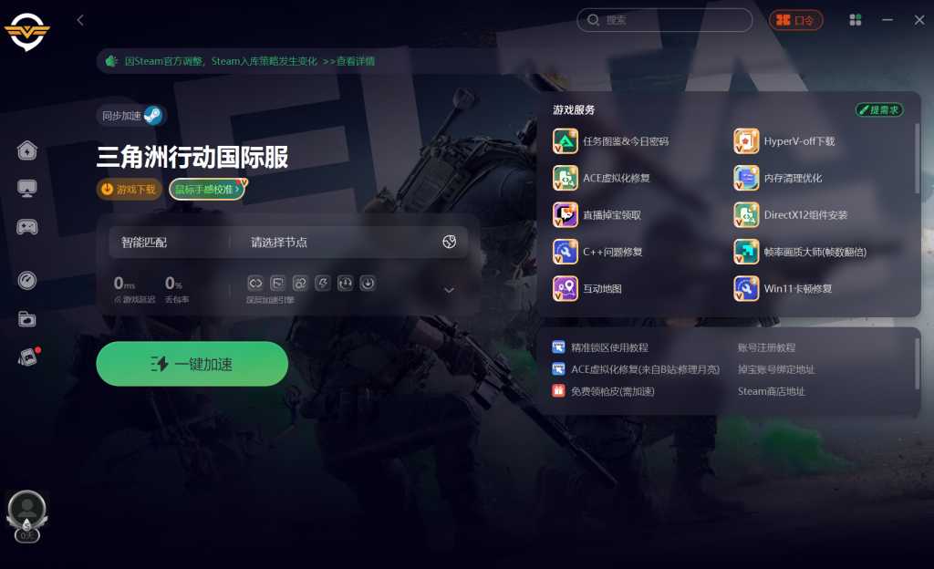 修复该报错需先通过奇游加速器对游戏进行加速,随后点击界面下方的 “游戏工具” 选项,在工具列表中找到 “一键修复 VT” 功能并点击,即可解决 ACE 反作弊 VT-d 报错问题。