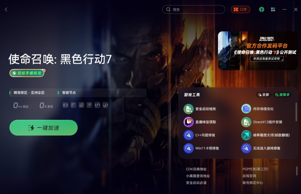 在打开COD22过程中,打开奇游,搜索”COD22″。优化电脑本地网络的环境,从而解决因网络问题导致的COD22进不去或卡在着色器加载界面等情况。有效处理因网络连接不稳定或延迟过高引起的各类启动故障,帮助玩家顺利进入游戏世界。