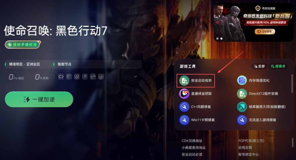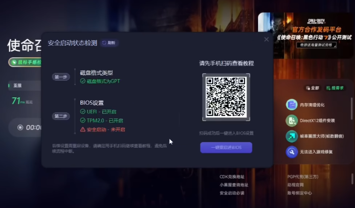 游戏激活之后,先别急着玩。在启动界面应该会有一个“安全启动检测”的按钮,点一下它就会自动帮你检查电脑状态。