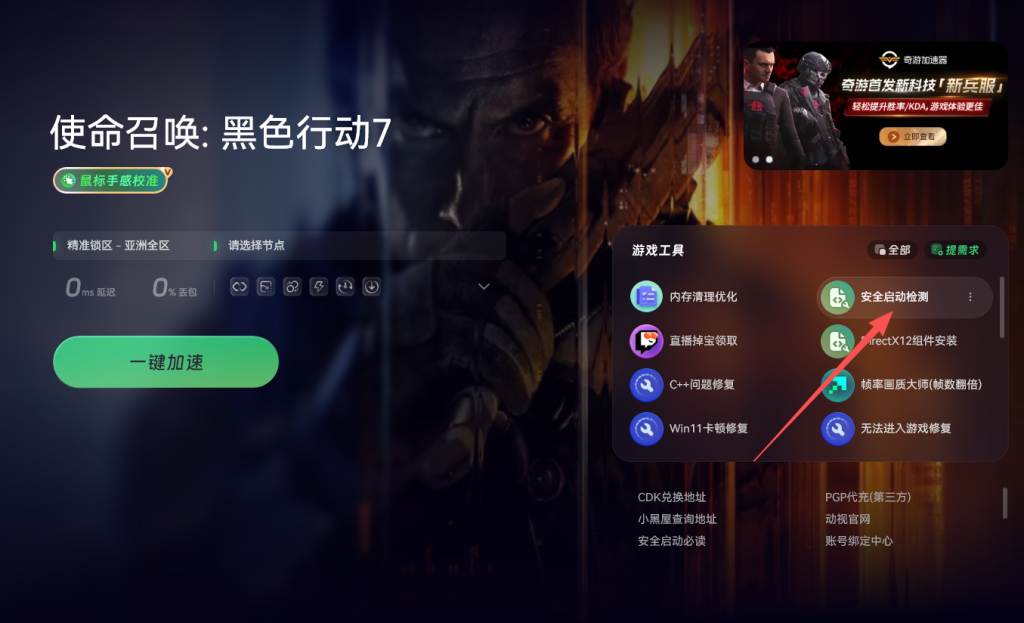 奇游加速工具还提供了安全启动检测功能,这一功能能够帮助玩家检测并修复与安全启动相关的设置问题。通过这一功能玩家可以轻松检查自己的电脑是否启用了secureboot,并获取相应的修复建议,从而解决因secureboot未启用而导致的游戏启动问题。