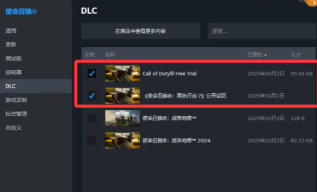 之后右键点击游戏,选择属性,在DLC选项中勾选相应内容,就可以开始下载游戏了。