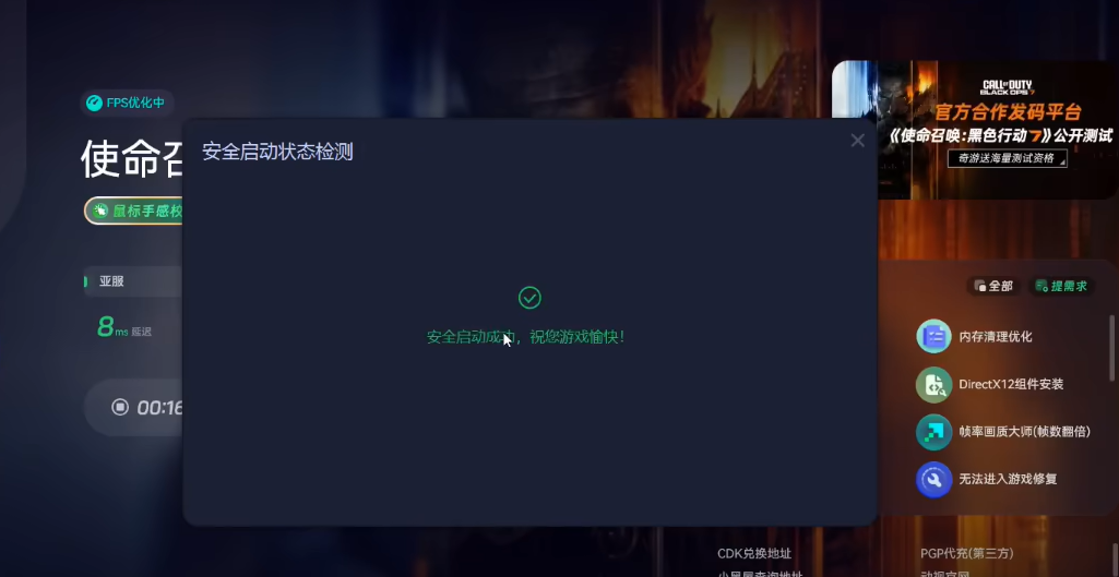 若设置正确,系统将显示安全启动成功的提示界面。此时,玩家即可顺利启动游戏,享受COD22带来的精彩体验。