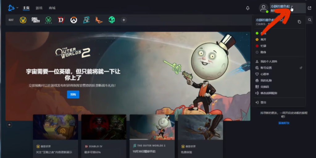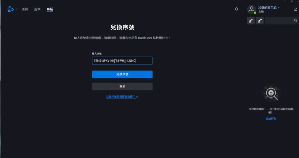 打开战网客户端,点击齿轮图标选择亚服,输入注册的账号登录。登录成功后,点击名字选择兑换码,粘贴之前复制的兑换码完成激活。
