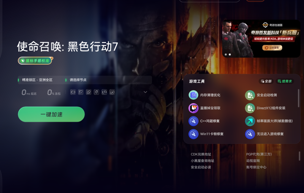 由于COD22的服务器不在国内,国内玩家在连接时可能会面临各类网络问题,从而导致无法加入游戏或服务器连接中断。为了解决这一问题,玩家可以使用奇游加速工具来优化网络连接。提高连接稳定性,从而改善游戏体验。