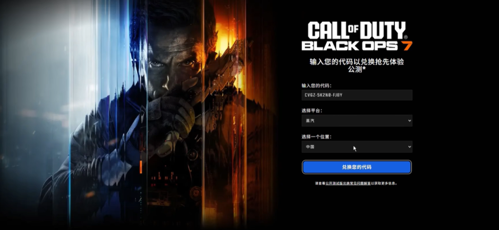 复制好CDK之后,在加速工具里搜“黑色行动7”,开启加速。加速成功后,从工具提供的入口跳转到测试资格激活页面。