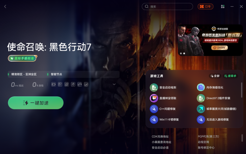 在打开《使命召唤22》过程中,打开奇游,搜索“《使命召唤22》”。通过优化电脑本地网络的环境,可以有效解决因网络连接不稳定、延迟过高或丢包导致的游戏启动失败、卡在着色器加载环节等问题。