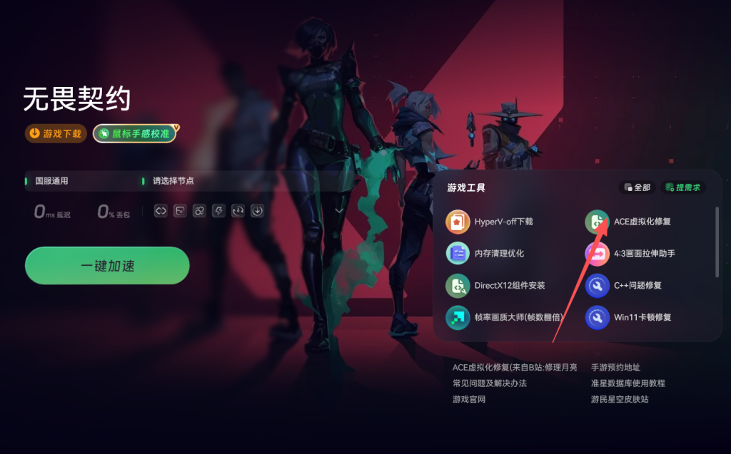 针对ACE安全中心报错等问题,玩家还可以奇游加速工具进行修复。通过奇游加速工具内置的ACE虚拟化修复功能,玩家可以轻松解决因虚拟化设置不当导致的报错问题,无需复杂操作,就可以恢复游戏的正常运行。