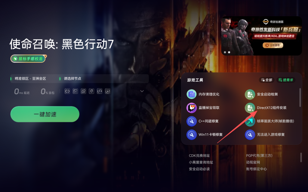 COD22进不去/卡加载界面,无法连接服务器,闪退崩溃问题解决可能是由于网络环境导致的问题。在打开COD22过程中,玩家可打开奇游加速工具搜索COD22,通过优化电脑本地网络环境,解决因网络问题导致的进不去游戏、卡加载界面、无法连接服务器或游戏闪退崩溃等情况。