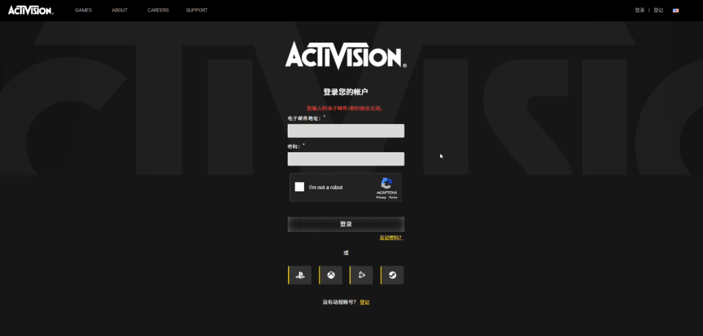 在兑换页面,玩家需要登录自己的动视账号。若没有账号,可点击下方注册按钮进行注册。完成基本信息填写后,设置账号密码即可完成注册。