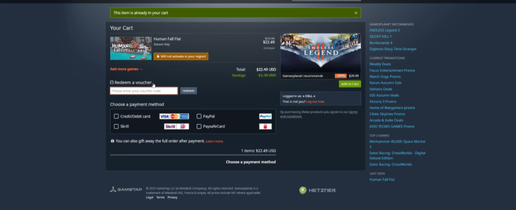 等到10月2日凌晨1点活动开始,进入这个网站就有机会领到代金券之类的福利,实现“喜加一”。成功后,你会拿到一个Steam平台的CDK兑换码。
