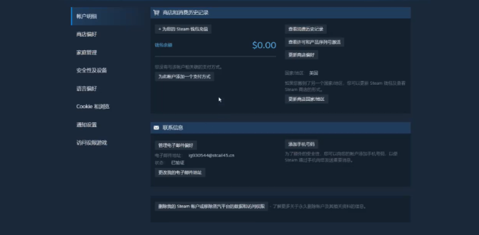 登录进Steam之后,记得去设置一下账号邮箱。点开右上角的“账户明细”,找到邮箱绑定选项,把它改成你自己的邮箱。