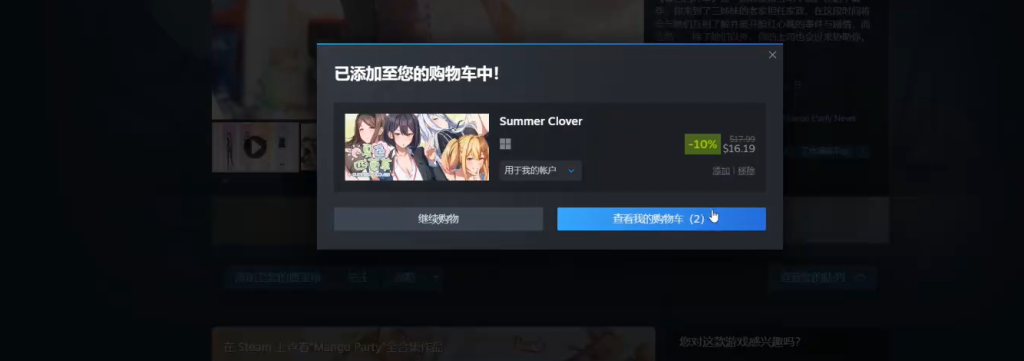美区账号一般不能用我们常用的支付宝或微信支付,所以得换个方式。先在Steam里搜索你想买的锁区游戏,点“加入购物车”。